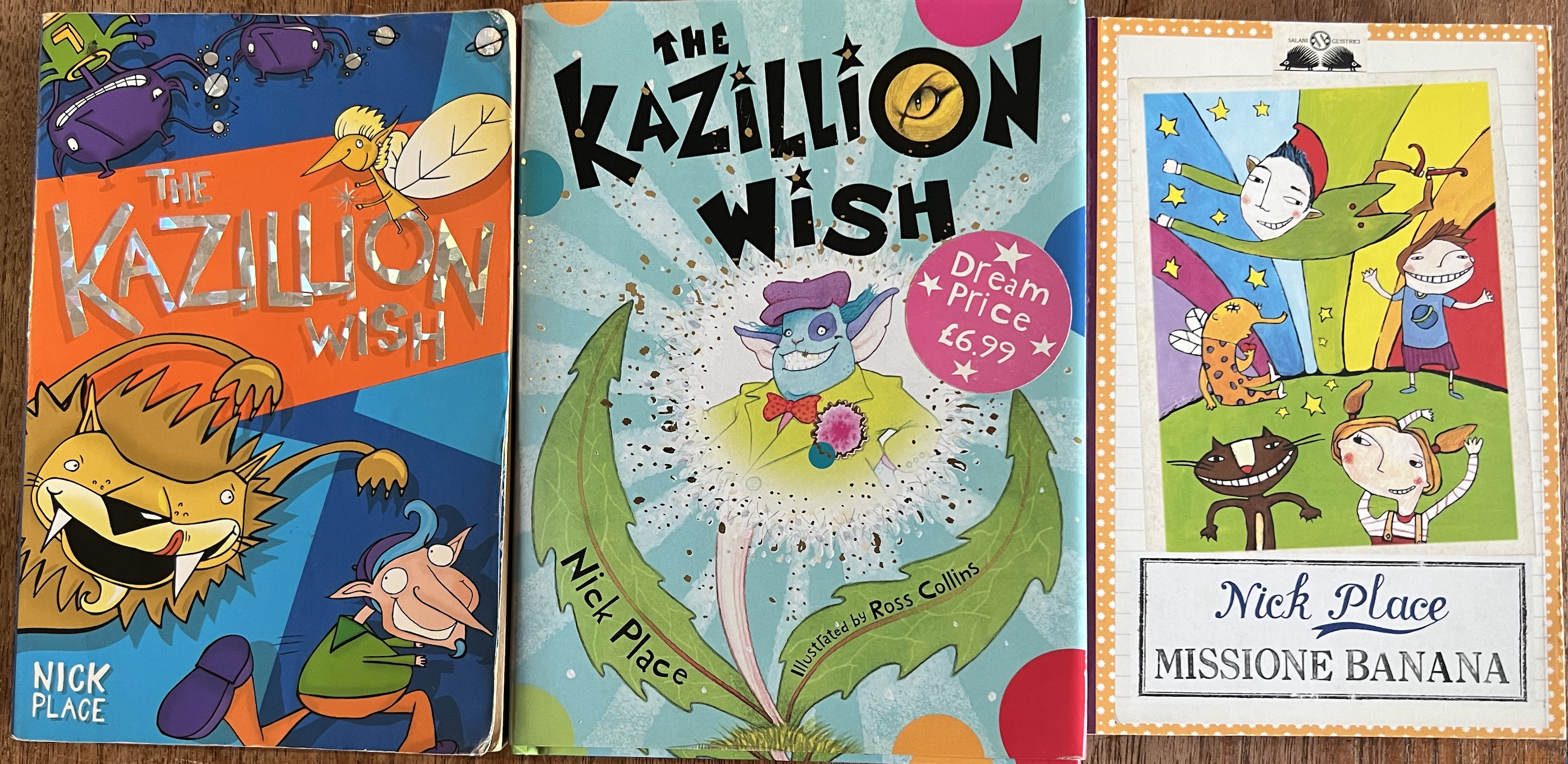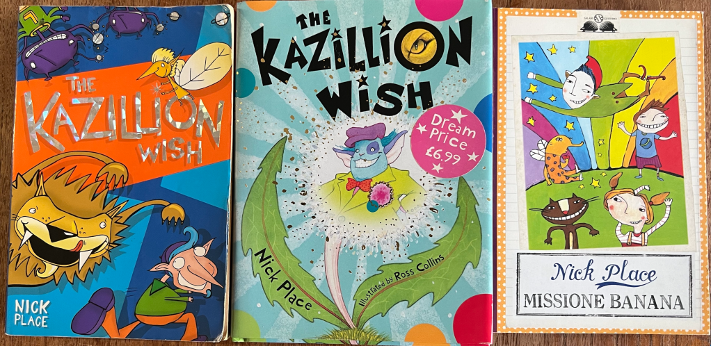 My first kids’ book, The Kazillion Wish, took on all manner of wild shapes, sizes and artwork as it was published in the USA, UK and Italy. It even became Missione Banana in Italy, which I’ve always thought was a better title than my original one. (Fun fact: The hardcover UK version is also now only available on Amazon for $120! – I think that officially makes it a collector’s item)